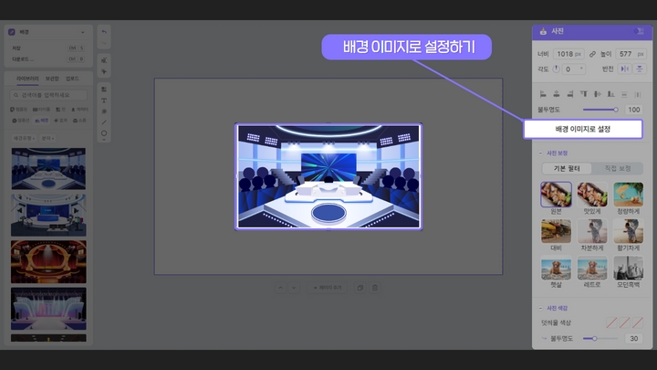 우측에 표시된 '배경 이미지로 설정' 버튼을 눌러 주시면 됩니다.