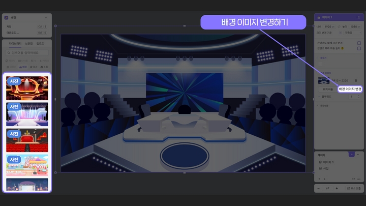 배경으로 설정하는 방법은 사진 요소를클릭한 후,